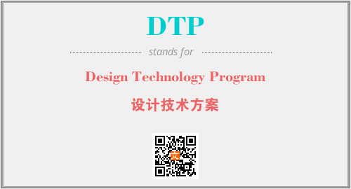 英文缩略词“DTP”经常作为“Design Technology Program”的英文缩写来使用,中文表示:“设计技术方案”。本文将详细介绍英文缩写词DTP所代表英文单词,其对应的中文拼音、详细解释以及在英语中的流行度。此外,还有关于缩略词DTP的分类、应用领域及相关应用示例等。
