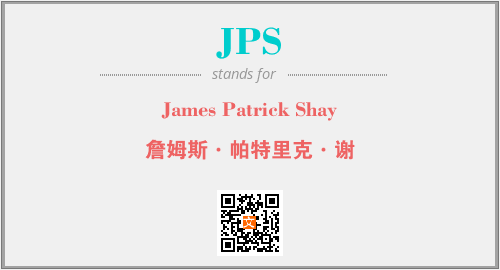 上述内容是“James Patrick Shay”作为“JPS”的缩写,解释为“詹姆斯·帕特里克·谢”时的信息,以及英文缩略词JPS所代表的英文单词,其对应的中文拼音、详细解释以及在英文中的流行度和相关分类、应用领域及应用示例等。