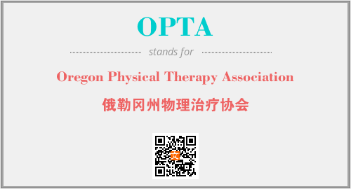 上述内容是“Oregon Physical Therapy Association”作为“OPTA”的缩写,解释为“俄勒冈州物理治疗协会”时的信息,以及英文缩略词OPTA所代表的英文单词,其对应的中文拼音、详细解释以及在英文中的流行度和相关分类、应用领域及应用示例等。