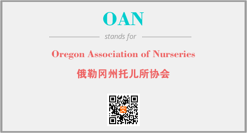 上述内容是“Oregon Association of Nurseries”作为“OAN”的缩写,解释为“俄勒冈州托儿所协会”时的信息,以及英文缩略词OAN所代表的英文单词,其对应的中文拼音、详细解释以及在英文中的流行度和相关分类、应用领域及应用示例等。