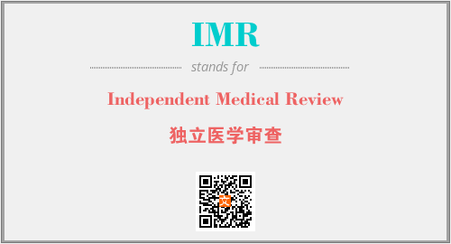 英文缩略词“IMR”经常作为“Independent Medical Review”的英文缩写来使用,中文表示:“独立医学审查”。本文将详细介绍英文缩写词IMR所代表英文单词,其对应的中文拼音、详细解释以及在英语中的流行度。此外,还有关于缩略词IMR的分类、应用领域及相关应用示例等。