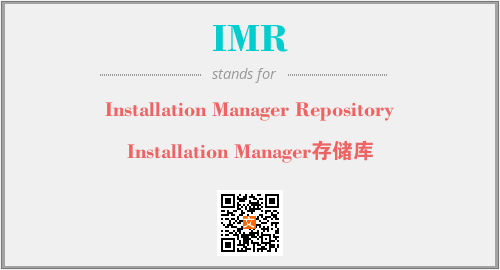 英文缩略词“IMR”经常作为“Installation Manager Repository”的英文缩写来使用,中文表示:“Installation Manager存储库”。本文将详细介绍英文缩写词IMR所代表英文单词,其对应的中文拼音、详细解释以及在英语中的流行度。此外,还有关于缩略词IMR的分类、应用领域及相关应用示例等。