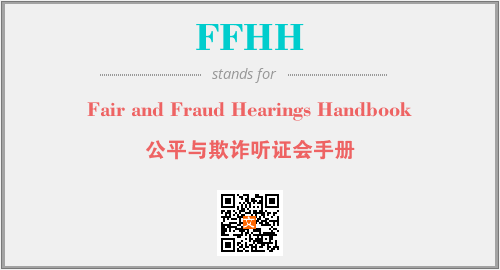 上述内容是“Fair and Fraud Hearings Handbook”作为“FFHH”的缩写,解释为“公平与欺诈听证会手册”时的信息,以及英文缩略词FFHH所代表的英文单词,其对应的中文拼音、详细解释以及在英文中的流行度和相关分类、应用领域及应用示例等。