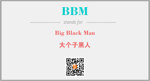 英文缩略词“BBM”经常作为“Big Black Man”的英文缩写来使用,中文表示:“大个子黑人”。本文将详细介绍英文缩写词BBM所代表英文单词,其对应的中文拼音、详细解释以及在英语中的流行度。此外,还有关于缩略词BBM的分类、应用领域及相关应用示例等。