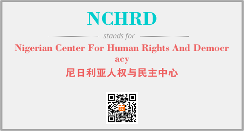 上述内容是“Nigerian Center For Human Rights And Democracy”作为“NCHRD”的缩写,解释为“尼日利亚人权与民主中心”时的信息,以及英文缩略词NCHRD所代表的英文单词,其对应的中文拼音、详细解释以及在英文中的流行度和相关分类、应用领域及应用示例等。