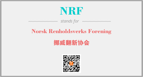 上述内容是“Norsk Renholdsverks Forening”作为“NRF”的缩写,解释为“挪威翻新协会”时的信息,以及英文缩略词NRF所代表的英文单词,其对应的中文拼音、详细解释以及在英文中的流行度和相关分类、应用领域及应用示例等。