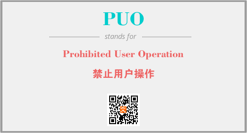 英文缩略词“PUO”经常作为“Prohibited User Operation”的英文缩写来使用,中文表示:“禁止用户操作”。本文将详细介绍英文缩写词PUO所代表英文单词,其对应的中文拼音、详细解释以及在英语中的流行度。此外,还有关于缩略词PUO的分类、应用领域及相关应用示例等。