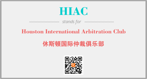 以上为Houston International Arbitration Club英文缩略词HIAC的中文解释,以及该英文缩写在英语的流行度、分类和应用领域方面的信息。