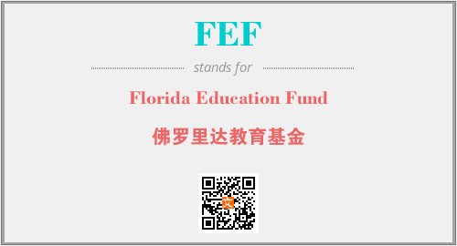 英文缩略词“FEF”经常作为“Florida Education Fund”的英文缩写来使用,中文表示:“佛罗里达教育基金”。本文将详细介绍英文缩写词FEF所代表英文单词,其对应的中文拼音、详细解释以及在英语中的流行度。此外,还有关于缩略词FEF的分类、应用领域及相关应用示例等。