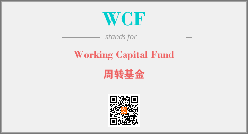 上述内容是“Working Capital Fund”作为“WCF”的缩写,解释为“周转基金”时的信息,以及英文缩略词WCF所代表的英文单词,其对应的中文拼音、详细解释以及在英文中的流行度和相关分类、应用领域及应用示例等。