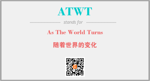 上述内容是“As The World Turns”作为“ATWT”的缩写,解释为“随着世界的变化”时的信息,以及英文缩略词ATWT所代表的英文单词,其对应的中文拼音、详细解释以及在英文中的流行度和相关分类、应用领域及应用示例等。