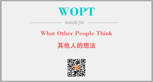 以上为What Other People Think英文缩略词WOPT的中文解释,以及该英文缩写在英语的流行度、分类和应用领域方面的信息。