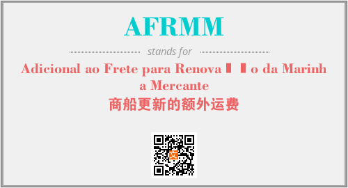 上述内容是“Adicional ao Frete para Renovação da Marinha Mercante”作为“AFRMM”的缩写,解释为“商船更新的额外运费”时的信息,以及英文缩略词AFRMM所代表的英文单词,其对应的中文拼音、详细解释以及在英文中的流行度和相关分类、应用领域及应用示例等。