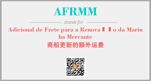 上述内容是“Adicional de Frete para a Renovação da Marinha Mercante”作为“AFRMM”的缩写,解释为“商船更新的额外运费”时的信息,以及英文缩略词AFRMM所代表的英文单词,其对应的中文拼音、详细解释以及在英文中的流行度和相关分类、应用领域及应用示例等。
