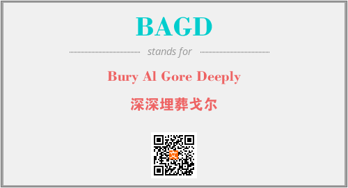 上述内容是“Bury Al Gore Deeply”作为“BAGD”的缩写,解释为“深深埋葬戈尔”时的信息,以及英文缩略词BAGD所代表的英文单词,其对应的中文拼音、详细解释以及在英文中的流行度和相关分类、应用领域及应用示例等。