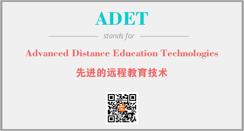 以上为Advanced Distance Education Technologies英文缩略词ADET的中文解释,以及该英文缩写在英语的流行度、分类和应用领域方面的信息。