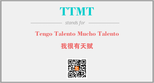 以上为Tengo Talento Mucho Talento英文缩略词TTMT的中文解释,以及该英文缩写在英语的流行度、分类和应用领域方面的信息。