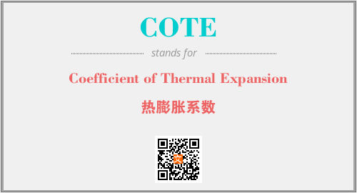 英文缩略词“COTE”经常作为“Coefficient of Thermal Expansion”的英文缩写来使用,中文表示:“热膨胀系数”。本文将详细介绍英文缩写词COTE所代表英文单词,其对应的中文拼音、详细解释以及在英语中的流行度。此外,还有关于缩略词COTE的分类、应用领域及相关应用示例等。