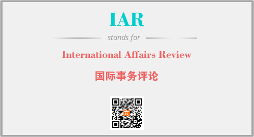 以上为International Affairs Review英文缩略词IAR的中文解释,以及该英文缩写在英语的流行度、分类和应用领域方面的信息。