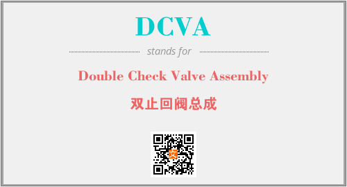 英文缩略词“DCVA”经常作为“Double Check Valve Assembly”的英文缩写来使用,中文表示:“双止回阀总成”。本文将详细介绍英文缩写词DCVA所代表英文单词,其对应的中文拼音、详细解释以及在英语中的流行度。此外,还有关于缩略词DCVA的分类、应用领域及相关应用示例等。