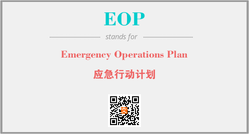 英文缩略词“EOP”经常作为“Emergency Operations Plan”的英文缩写来使用,中文表示:“应急行动计划”。本文将详细介绍英文缩写词EOP所代表英文单词,其对应的中文拼音、详细解释以及在英语中的流行度。此外,还有关于缩略词EOP的分类、应用领域及相关应用示例等。