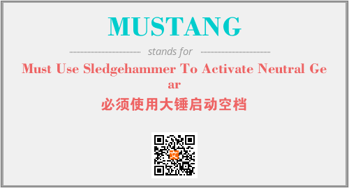 上述内容是“Must Use Sledgehammer To Activate Neutral Gear”作为“MUSTANG”的缩写,解释为“必须使用大锤启动空档”时的信息,以及英文缩略词MUSTANG所代表的英文单词,其对应的中文拼音、详细解释以及在英文中的流行度和相关分类、应用领域及应用示例等。