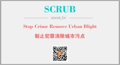 上述内容是“Stop Crime Remove Urban Blight”作为“SCRUB”的缩写,解释为“制止犯罪消除城市污点”时的信息,以及英文缩略词SCRUB所代表的英文单词,其对应的中文拼音、详细解释以及在英文中的流行度和相关分类、应用领域及应用示例等。