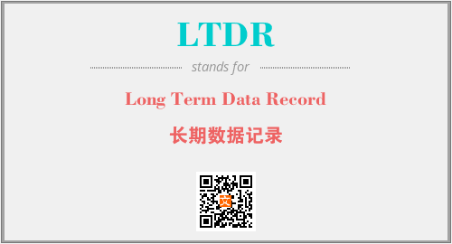 英文缩略词“LTDR”经常作为“Long Term Data Record”的英文缩写来使用,中文表示:“长期数据记录”。本文将详细介绍英文缩写词LTDR所代表英文单词,其对应的中文拼音、详细解释以及在英语中的流行度。此外,还有关于缩略词LTDR的分类、应用领域及相关应用示例等。
