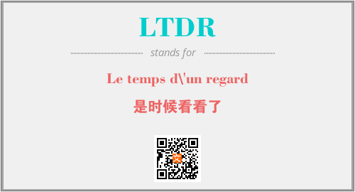 上述内容是“Le temps d\'un regard”作为“LTDR”的缩写,解释为“是时候看看了”时的信息,以及英文缩略词LTDR所代表的英文单词,其对应的中文拼音、详细解释以及在英文中的流行度和相关分类、应用领域及应用示例等。