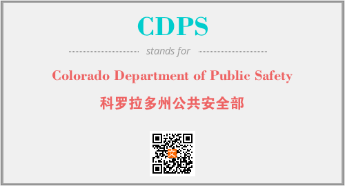上述内容是“Colorado Department of Public Safety”作为“CDPS”的缩写,解释为“科罗拉多州公共安全部”时的信息,以及英文缩略词CDPS所代表的英文单词,其对应的中文拼音、详细解释以及在英文中的流行度和相关分类、应用领域及应用示例等。