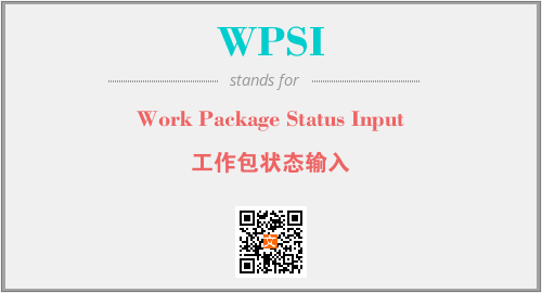 英文缩略词“WPSI”经常作为“Work Package Status Input”的英文缩写来使用,中文表示:“工作包状态输入”。本文将详细介绍英文缩写词WPSI所代表英文单词,其对应的中文拼音、详细解释以及在英语中的流行度。此外,还有关于缩略词WPSI的分类、应用领域及相关应用示例等。