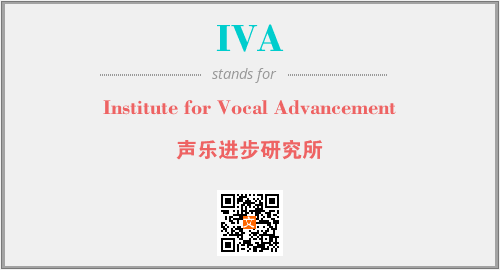英文缩略词“IVA”经常作为“Institute for Vocal Advancement”的英文缩写来使用,中文表示:“声乐进步研究所”。本文将详细介绍英文缩写词IVA所代表英文单词,其对应的中文拼音、详细解释以及在英语中的流行度。此外,还有关于缩略词IVA的分类、应用领域及相关应用示例等。