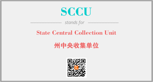 英文缩略词“SCCU”经常作为“State Central Collection Unit”的英文缩写来使用,中文表示:“州中央收集单位”。本文将详细介绍英文缩写词SCCU所代表英文单词,其对应的中文拼音、详细解释以及在英语中的流行度。此外,还有关于缩略词SCCU的分类、应用领域及相关应用示例等。