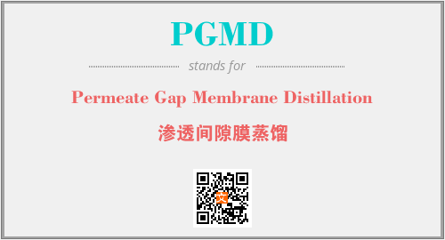 上述内容是“Permeate Gap Membrane Distillation”作为“PGMD”的缩写,解释为“渗透间隙膜蒸馏”时的信息,以及英文缩略词PGMD所代表的英文单词,其对应的中文拼音、详细解释以及在英文中的流行度和相关分类、应用领域及应用示例等。