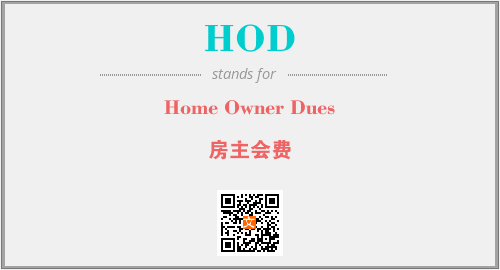 英文缩略词“HOD”经常作为“Home Owner Dues”的英文缩写来使用,中文表示:“房主会费”。本文将详细介绍英文缩写词HOD所代表英文单词,其对应的中文拼音、详细解释以及在英语中的流行度。此外,还有关于缩略词HOD的分类、应用领域及相关应用示例等。
