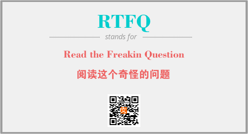 上述内容是“Read the Freakin Question”作为“RTFQ”的缩写,解释为“阅读这个奇怪的问题”时的信息,以及英文缩略词RTFQ所代表的英文单词,其对应的中文拼音、详细解释以及在英文中的流行度和相关分类、应用领域及应用示例等。