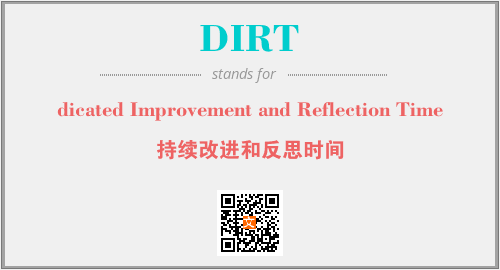 英文缩略词“DIRT”经常作为“dicated Improvement and Reflection Time”的英文缩写来使用,中文表示:“持续改进和反思时间”。本文将详细介绍英文缩写词DIRT所代表英文单词,其对应的中文拼音、详细解释以及在英语中的流行度。此外,还有关于缩略词DIRT的分类、应用领域及相关应用示例等。