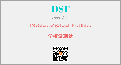 上述内容是“Division of School Facilities”作为“DSF”的缩写,解释为“学校设施处”时的信息,以及英文缩略词DSF所代表的英文单词,其对应的中文拼音、详细解释以及在英文中的流行度和相关分类、应用领域及应用示例等。