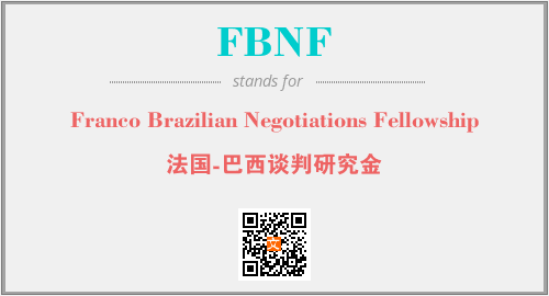 上述内容是“Franco Brazilian Negotiations Fellowship”作为“FBNF”的缩写,解释为“法国-巴西谈判研究金”时的信息,以及英文缩略词FBNF所代表的英文单词,其对应的中文拼音、详细解释以及在英文中的流行度和相关分类、应用领域及应用示例等。