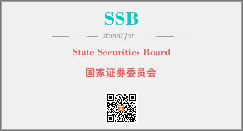上述内容是“State Securities Board”作为“SSB”的缩写,解释为“国家证券委员会”时的信息,以及英文缩略词SSB所代表的英文单词,其对应的中文拼音、详细解释以及在英文中的流行度和相关分类、应用领域及应用示例等。