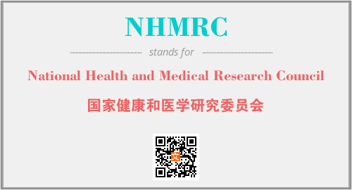 上述内容是“National Health and Medical Research Council”作为“NHMRC”的缩写,解释为“国家健康和医学研究委员会”时的信息,以及英文缩略词NHMRC所代表的英文单词,其对应的中文拼音、详细解释以及在英文中的流行度和相关分类、应用领域及应用示例等。