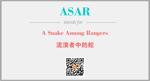 上述内容是“A Snake Among Rangers”作为“ASAR”的缩写,解释为“流浪者中的蛇”时的信息,以及英文缩略词ASAR所代表的英文单词,其对应的中文拼音、详细解释以及在英文中的流行度和相关分类、应用领域及应用示例等。