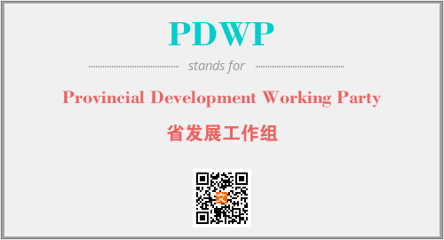 上述内容是“Provincial Development Working Party”作为“PDWP”的缩写,解释为“省发展工作组”时的信息,以及英文缩略词PDWP所代表的英文单词,其对应的中文拼音、详细解释以及在英文中的流行度和相关分类、应用领域及应用示例等。