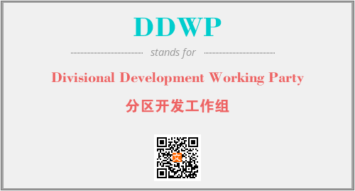 上述内容是“Divisional Development Working Party”作为“DDWP”的缩写,解释为“分区开发工作组”时的信息,以及英文缩略词DDWP所代表的英文单词,其对应的中文拼音、详细解释以及在英文中的流行度和相关分类、应用领域及应用示例等。