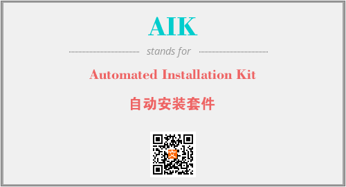英文缩略词“AIK”经常作为“Automated Installation Kit”的英文缩写来使用,中文表示:“自动安装套件”。本文将详细介绍英文缩写词AIK所代表英文单词,其对应的中文拼音、详细解释以及在英语中的流行度。此外,还有关于缩略词AIK的分类、应用领域及相关应用示例等。