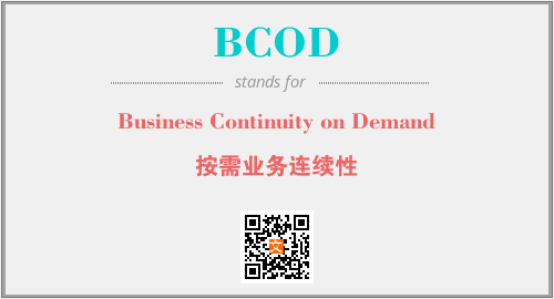 英文缩略词“BCOD”经常作为“Business Continuity on Demand”的英文缩写来使用,中文表示:“按需业务连续性”。本文将详细介绍英文缩写词BCOD所代表英文单词,其对应的中文拼音、详细解释以及在英语中的流行度。此外,还有关于缩略词BCOD的分类、应用领域及相关应用示例等。