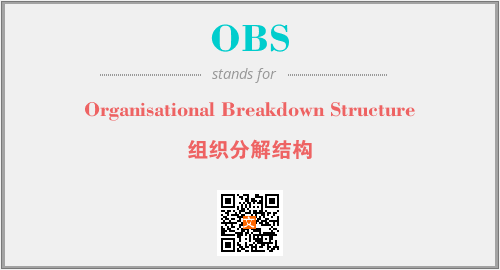 英文缩略词“OBS”经常作为“Organisational Breakdown Structure”的英文缩写来使用,中文表示:“组织分解结构”。本文将详细介绍英文缩写词OBS所代表英文单词,其对应的中文拼音、详细解释以及在英语中的流行度。此外,还有关于缩略词OBS的分类、应用领域及相关应用示例等。