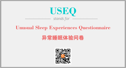 上述内容是“Unusual Sleep Experiences Questionnaire”作为“USEQ”的缩写,解释为“异常睡眠体验问卷”时的信息,以及英文缩略词USEQ所代表的英文单词,其对应的中文拼音、详细解释以及在英文中的流行度和相关分类、应用领域及应用示例等。