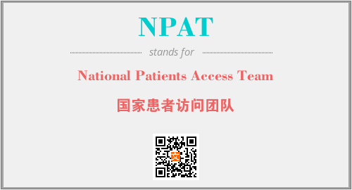 上述内容是“National Patients Access Team”作为“NPAT”的缩写,解释为“国家患者访问团队”时的信息,以及英文缩略词NPAT所代表的英文单词,其对应的中文拼音、详细解释以及在英文中的流行度和相关分类、应用领域及应用示例等。