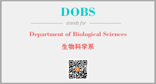 上述内容是“Department of Biological Sciences”作为“DOBS”的缩写,解释为“生物科学系”时的信息,以及英文缩略词DOBS所代表的英文单词,其对应的中文拼音、详细解释以及在英文中的流行度和相关分类、应用领域及应用示例等。